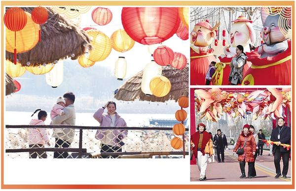 1月5日上午,引黄调蓄湖畔璀璨的花灯,营造出浓浓的新年氛围,吸引着居民们扶老携幼前来观赏游玩、打卡。记者 梁照曾 摄
