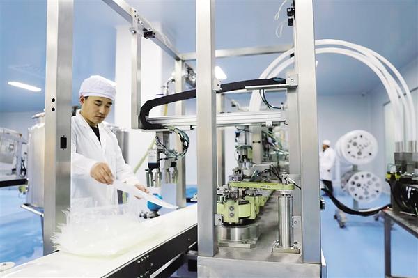 鑫丰生物经济产业园项目依托周口临港开发区的地理优势,结合资源优势,专注于生物发酵类产品的研发,建设一个集生物原料药、生物制剂、生物医用包材于一体的全产业链生物医药产业基地。目前,鑫丰生物综合制剂一车间已进入试产阶段。记者 宋风 摄
