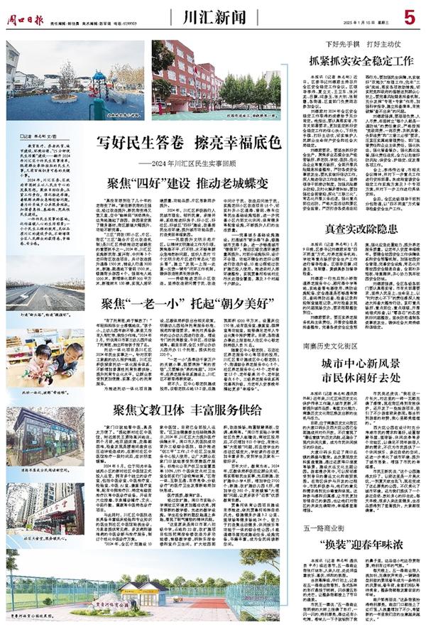 2024年,川汇区委、区政府牢固树立以人民为中心的发展思想,聚焦目标任务,压紧工作责任,强化推进举措,着眼解决群众急难愁盼问题,着力补齐城乡公共服务短板,加强普惠性、基础性、兜底性民生建设。