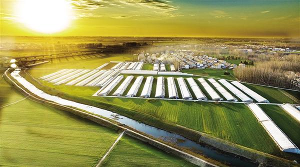 1月16日,在扶沟县柴岗乡梅桥村,曲折蜿蜒的幸福河环绕村旁,河岸一侧整齐的蔬菜大棚在冬日暖阳照耀下闪闪发光,一幅乡村振兴崭新画卷跃然眼前。 记者 金月全 通讯员 宋福星 摄