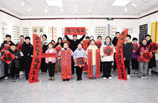 春节将至,中国书法之乡郸城县掀起写春联热潮。记者在润德书院看到,青年书法家协会主席陈吴陆带领一群小书法家饱蘸墨、稳提笔,将美好的祝愿凝于笔端,营造出浓浓的年味。小书法家高兴地说:“每年的春联都是我们自己写的,我们把祝福融入春联,希望全家新年快乐。我们要更加努力练习书法,传承和弘扬中华优秀传统文化。”记者 徐松 摄
