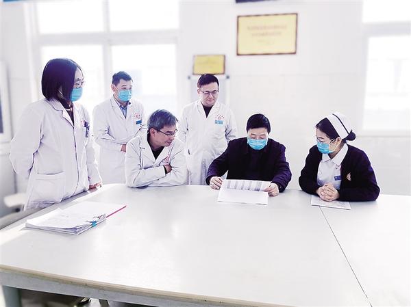 1月16日至18日,周口市中医院全面质量管理专家组对该院26个临床科室进行联合督导检查。图为专家查看临床科室全面质量管理工作材料。