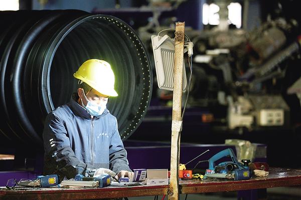上图:1月16日,工人正在河南通源管业有限公司生产线上忙碌。