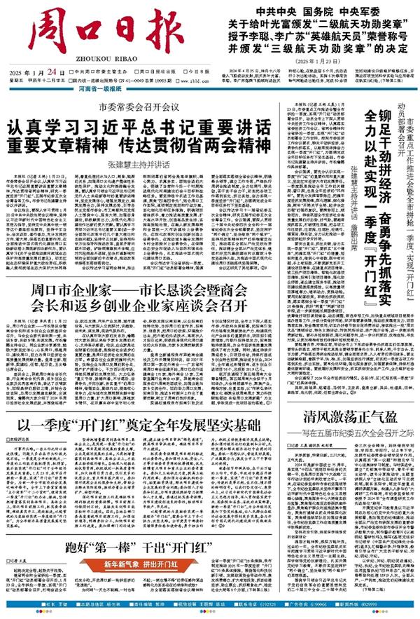 会议指出,要深入学习贯彻1月20日中共中央政治局会议精神,坚持以习近平新时代中国特色社会主义思想为指导,坚持党中央集中统一领导这个最高政治原则,坚持干字当头、奋发进取、善作善为,充分发挥把方向、管大局、保落实的重要作用,在全面推进中国式现代化建设周口实践新征程上展现新担当新作为。要认真学习《关于全面推动黄河流域生态保护和高质量发展的意见》,切实扛起生态环境保护重大政治责任,积极融入黄河流域生态大保护大协同格局,着重处理好水与人口、粮食、能源的关系,加强周口文化遗产整体性系统性保护,推动文化和旅游融合发展。要认真学习领会习近平总书记同党外人士共迎新春时的重要讲话精神,坚定发展信心,增强发展定力,凝聚发展合力,保持发展态势,引导各民主党派市委会、市工商联和无党派人士围绕中心、服务大局,加强自身建设,积极献策出力,为现代化周口建设作出新的更大贡献。要认真学习贯彻习近平总书记重要文章《进一步全面深化改革中的几个重大理论和实践问题》,坚持守正创新,坚持用科学方法指导和推进改革,直面矛盾问题不回避,铲除顽瘴痼疾不含糊,应对风险挑战不退缩,坚决打通影响和制约全面创新的卡点堵点,推动改革举措落实落细落到位。