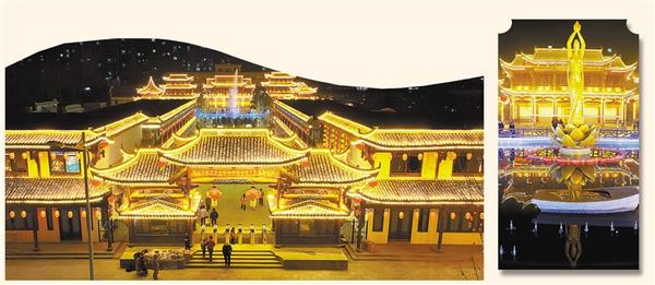 2月4日晚,项城市德高民俗博物馆内流光溢彩。古建筑的轮廓灯、高挂的大红灯笼和灯光下的喷泉,彰显出浓浓年味,吸引众多游客前来观赏。
