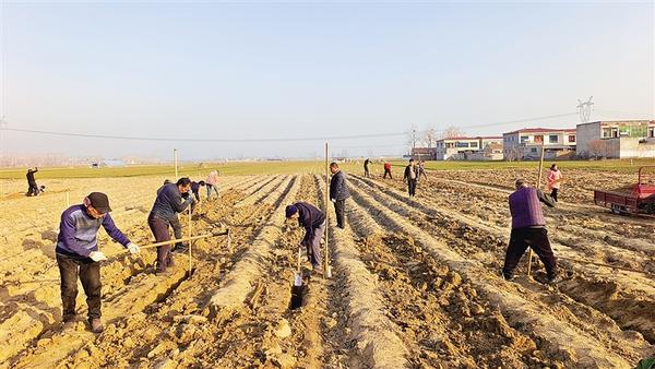 近日,市城乡一体化示范区许湾街道大于庄村种植的山药,嗅着春天的气息破土上市。该村依托自然条件种植优质山药,为农业增效、农民增收提供了一条有效路径。图为2月10日,村民们在采挖山药。