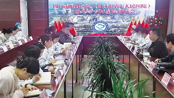2020年,周口市眼科医院获批成立周口市眼科研究所;2021年8月,增挂周口市第七人民医院牌子;2022年1月,被评定为国家二级甲等医院;2022年2月,成立周口市眼科专科联盟;2023年10月,顺利通过电子病历系统应用水平四级评审;2023年11月,顺利通过国家三级眼科医院验收;2024年,成立9个“教授名医工作室”,并邀请9名国内知名眼科博士到院长期坐诊,确保患者低成本获得国内领先的医疗服务。