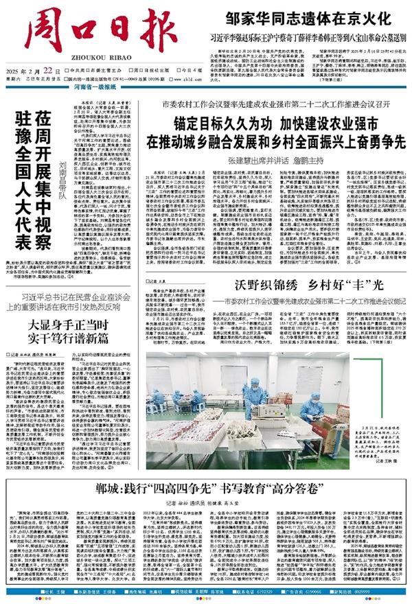本报讯 (记者 王艳 王晨) 2月21日,市委农村工作会议暨率先建成农业强市第二十二次工作推进会议召开,深入贯彻习近平总书记关于“三农”工作的重要论述和重要指示精神,全面贯彻中央农村工作会议和省委农村工作会议部署,落实市委五届七次全会暨市委经济工作会议和市两会部署,就做好今年“三农”工作作出具体安排,动员全市上下在推动城乡融合发展和乡村全面振兴上奋勇争先,在推动乡村振兴走在前列中率先建成农业强市,为奋力谱写中国式现代化周口篇章提供坚实支撑。市委书记张建慧出席并讲话。市长詹鹏主持。
