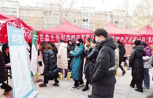2月6日,农历正月初九,郸城县举行2025年“春风送岗促就业、精准服务暖民心”春风行动启动仪式。县内外53家企业提供就业岗位2000多个,1400多名有求职意向人员现场咨询,300多人现场达成就业意向。 记者 徐松 摄