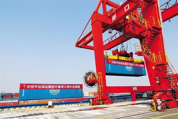 2月27日,周口港至南通港集装箱航线在周口中心港范营作业区开航。该航线由国内航运“龙头”企业中国远洋海运集团有限公司(以下简称中远海运)运营。中远海运的入驻将对周口港拓展物流新通道,提升货物吞吐力和辐射力起到重要作用。 记者 宋风 摄