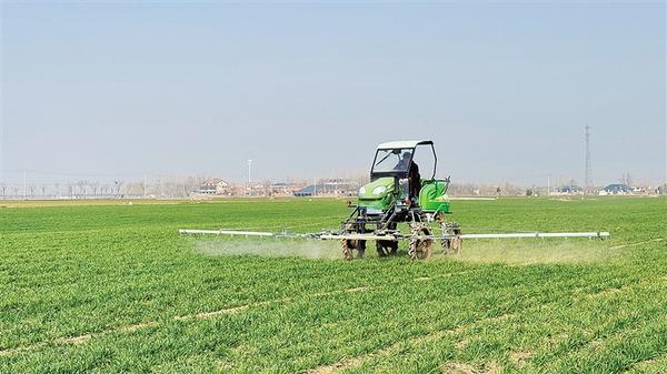面对今年小麦苗情旺长、旱情、病虫风险并存的特点,黄泛区农场积极利用科技手段,因地、因苗加强春季田管。依托大数据平台,组织农技专家分区域、分类型制定管理方案。对旺长麦田,采取镇压、深中耕与化学防控相结合,抑制无效分蘖;对弱苗田块,优先追施肥料,使麦苗促弱转壮,结合病虫害防治喷施磷酸二氢钾、芸苔素内酯,促进小麦根系发育和分蘖滋生;对墒情不足区域,及时组织灌水,实现 “小水勤灌、节水增效”。