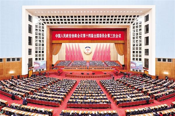 上午9时,闭幕会开始。王沪宁宣布,中国人民政治协商会议第十四届全国委员会第三次会议应出席委员2154人,实到2082人,符合规定人数。