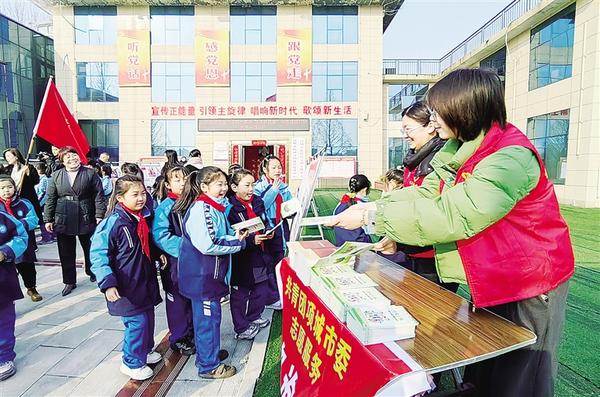 为进一步弘扬新时代雷锋精神,践行“奉献、友爱、互助、进步”的志愿服务精神,推动新时代文明实践工作走深走实,日前,项城市委宣传部、市委社会工作部、市文明办、市精神文明建设促进中心、市融媒体中心联合举办的“文明大集市 艺展新风采”学雷锋我行动文明实践活动在市中医院北党史广场举行,吸引广大群众和小学生积极参与。图为小学生领取科普资料。记者 张志新 摄