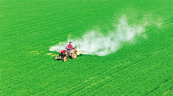 3月13日,扶沟县大李庄乡常岗村村民在田间进行“一喷三防”作业。近日,随着气温逐步回暖,我市农民紧抓农业生产,积极开展作物田间管理,力争有个好收成。