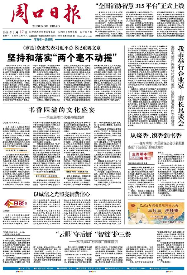本报讯 (记者 李凤霞) 3月15日,市长詹鹏主持召开周口市第四次企业家—市长恳谈会,深入学习贯彻习近平总书记在民营企业座谈会上的重要讲话精神,聚焦“四高四争先”,扎实推进“万人助万企”活动走深走实,以优质高效的服务助力广大企业在周口实现更好发展。中国棉纺织行业协会特邀副会长、河南省纺织服装产业链盟会长袁建龙,中原工学院纺织服装产业研究院周伟涛教授应邀作专题辅导。副市长梁建松,市政协副主席、市发展改革委主任王富生,市政府秘书长王文峰出席会议。