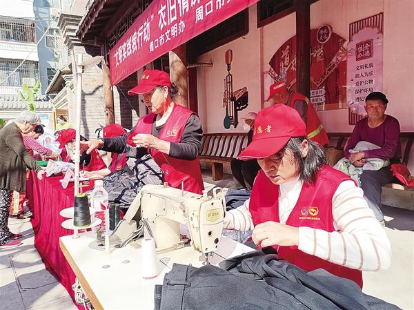 3月26日,市文明办、市妇联、市大铁牛巾帼志愿者联合会组织志愿者走进川汇区国槐街,为居民提供理发、缝补衣物、磨刀、义诊等服务,以实际行动践行新时代雷锋精神。记者 邱一帆 摄