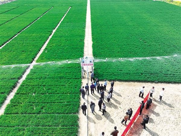 设施农业看泛区。近日,黄泛区农场一企业自主研发的小型自走式浇地机备受种植大户关注。记者 张猛 摄