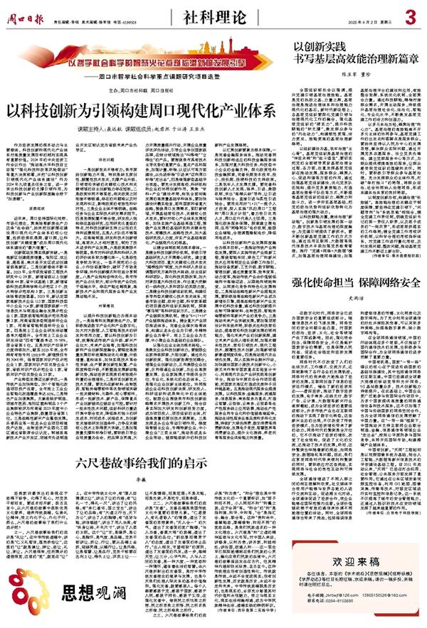近年来,周口坚持国际化视野、市场化理念,聚焦培育新质生产力这条“生命线”,始终把创新摆在建设周口现代化产业体系的核心位置,抢抓政策机遇期、窗口期,让科技创新“关键变量”成为周口现代化体系建设的“最大增量”。