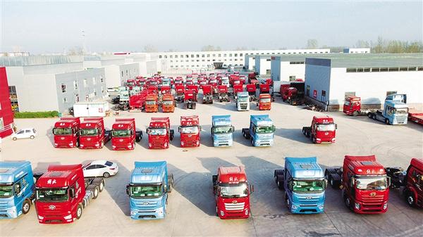 随着周口市临港重卡汽贸物流产业园的建成投用,中国重汽、陕汽等行业龙头开始在产业园构建起辐射中原的商用车全产业链。多式联运不仅打通了物流“大动脉”,更催生车辆展销、智慧维保、金融服务等为一体的产业生态圈。 这种“港产城”深度联动的发展模式,既为运输从业者提供全周期服务,又通过延伸产业链培育出创新业态,正重塑内陆城市“向水图强”的发展基因,成为区域经济动能转换的鲜活注脚。图为4月5日,临港重卡汽贸物流产业园内停放的各种重型卡车。记者 刘俊涛 摄