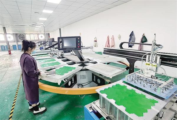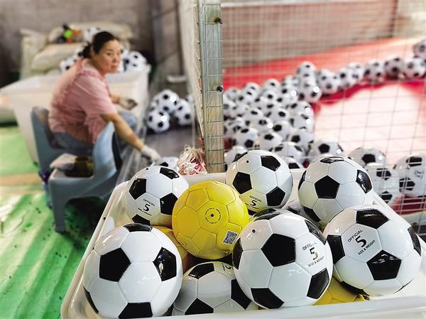 4月10日,位于鹿邑县任集乡返乡创业园内的鹿邑德胜体育用品有限公司生产车间,工人在生产线上忙碌。该公司深耕足球、排球、篮球等体育用品领域,产品覆盖国内外市场,年产值突破2000万元,年创税200万元。 记者 王映 摄