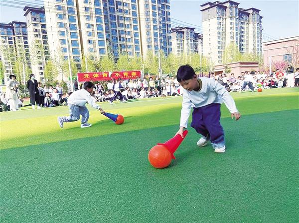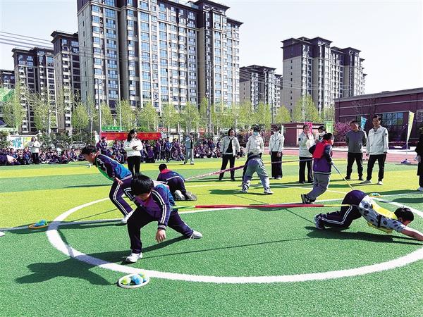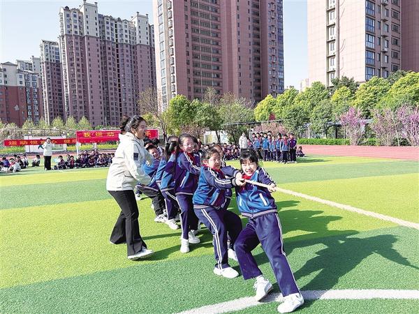 为积极响应国家关于加强青少年体育、增强青少年体质的号召,全面贯彻落实“五育并举”教育理念,4月2日至3日,项城市政和路小学举办了以“春启政和 逐梦赛场”为主题的春季运动会。本次运动会将传统体育项目与趣味游戏相结合,按不同年级设置比赛项目,引得广大师生踊跃参与。图为运动会现场。