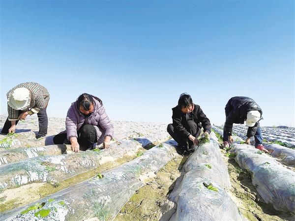清明前后,种瓜点豆。连日来,随着气温逐渐升高,春管工作进入关键时期,农户抢抓农时,疏苗、拔草。