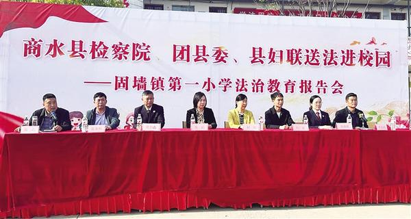 为进一步增强学生的法治意识和自我保护能力,近日,商水县人民检察院、团县委、县妇联联合组建法治宣讲团,到固墙镇第一小学开展送法进校园活动,受到师生热烈欢迎。 记者 马治卫 通讯员 徐璐薇 摄