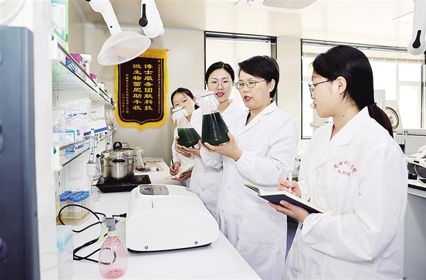 4月13日,河南省作物高效生产与食品质量安全重点实验室主任、河南省科技特派员张福丽(右二)带领团队成员,在实验室认真工作。据悉,该实验室研发的微生物菌肥,能在减施化学肥料的情况下提升小麦根系活力,减少病害发生,实现小麦品质和产量双提升。