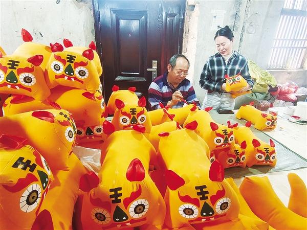 乡村全面振兴,产业兴旺是基础。近年来,淮阳区冯塘乡产业发展取得成效,特色种植产业、农产品加工产业、农村电商等发展势头良好。图为一位老师傅正在布老虎上彩绘。记者 侯俊豫 摄