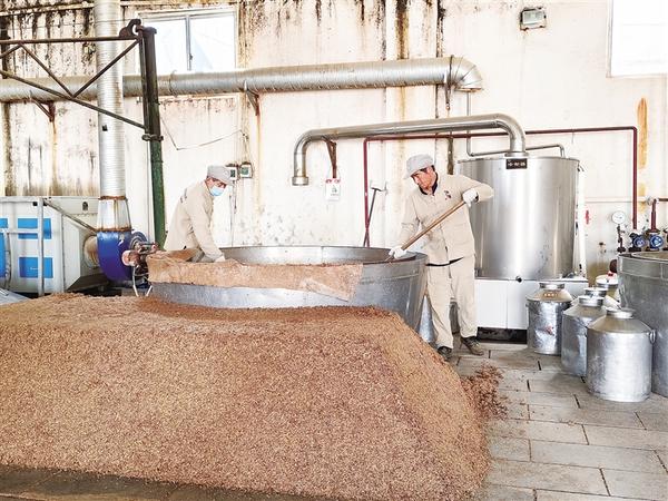 近日,两位酿酒师手持木锨,遵循“轻撒匀铺”的酿制古法,将发酵好的酒糟层层铺入甑锅中,把酒蒸出来。据了解,近年来,淮陈酒业坚持纯粮固态发酵,引入川派浓香工艺,精心勾调,所酿之酒具有窖香浓郁、绵甜净爽的特点。记者 侯俊豫 通讯员 赵威威 摄
