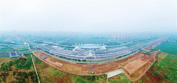 近日,由中铁十局承建的平漯周高铁周口东站开工建设。该站点位于郑阜高铁周口东站东侧,建成后两站将合二为一,成为豫东区域高铁枢纽。图为航拍视角下的施工现场。
