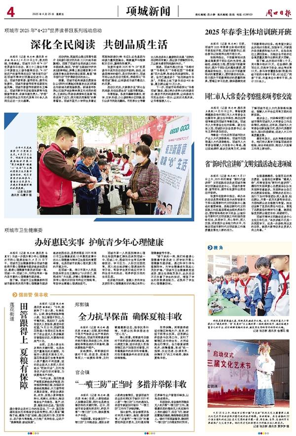 本报讯(记者 张志新 通讯员 杨国敬) “今年,我家种了5亩小麦,长势良好。以前,我全凭经验种植小麦,加上管理不到位,几乎靠天收。现在好了,全程有技术人员指导,感觉丰收在望。”4月22日,项城市莲花街道小张营社区张春光听了农业技术人员讲解麦田管理知识后,对夏粮丰收底气十足。