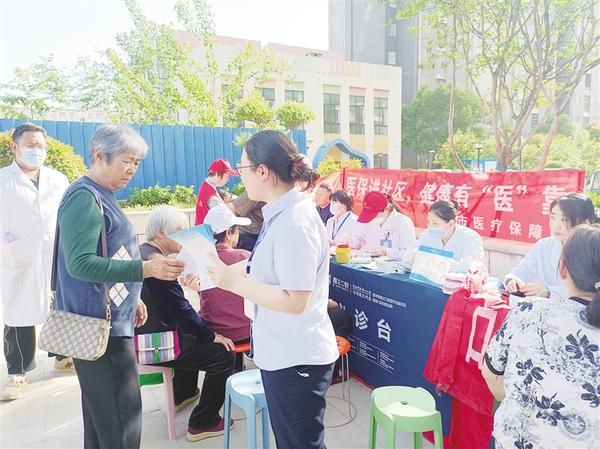 4月23日,周口市医疗保障局志愿者在川汇区七一路街道开展便民服务进社区活动。志愿者针对门诊慢性病办理、异地就医等问题,为社区居民提供政策咨询、帮办代办服务,让他们在“家门口”就能享受到优质、贴心的医保服务。 图为活动现场。 记者 邱一帆 摄