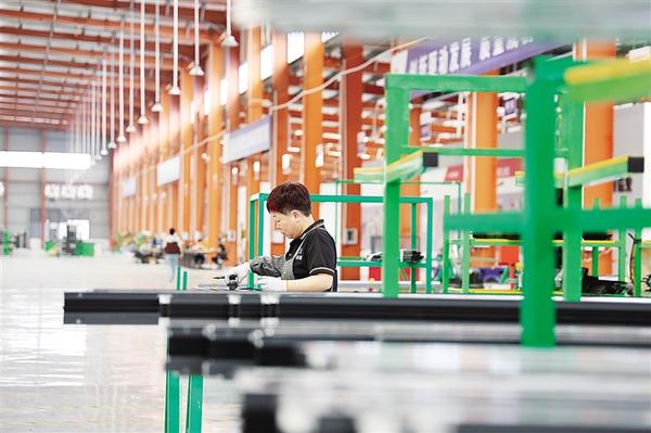今年以来,我市坚持“政策为大、项目为王”,聚焦高质量发展首要任务,紧盯“五个清单”,抓实在建项目、智能化改造项目、竣工投产项目,持续推进重大产业项目投资,推动更多企业“进群入链”。图为5月6日,位于川汇区的河南鑫浩阳新型建材科技有限公司新投产车间内,工人正忙碌地生产。记者 刘俊涛 摄
