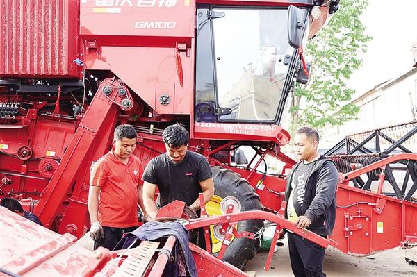 5月7日,在淮阳区曹河乡赵楼村一处收割机维修点,几位收割机手正细致检修、调试每一台“钢铁骏马”,不放过任何细节,为即将到来的抢收战役保驾护航。