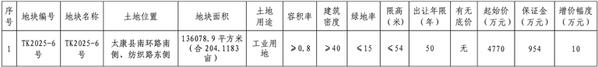 TK2025-6号地块拍卖报价时间:2025年5月30日9时30分。拍卖网址:周口市公共资源交易中心网站(网址:http://221.14.138.68/)。
