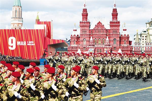 5月9日,在俄罗斯首都莫斯科,军人参加纪念苏联伟大卫国战争胜利80周年阅兵式。