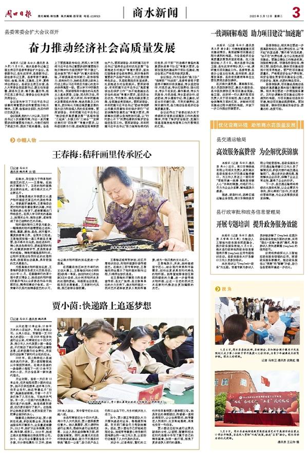 从日处理10单业务、10余平方米的小店起步,到成立物流公司;从单人创业,到管理一支200余人的团队……自2008年投身快递行业以来,河南省妇女十四大代表、周口市人大代表贾小茵一路奋进,不仅推动了商水快递行业蓬勃发展,还积极履行社会责任,用实际行动诠释了新时代女性的担当。