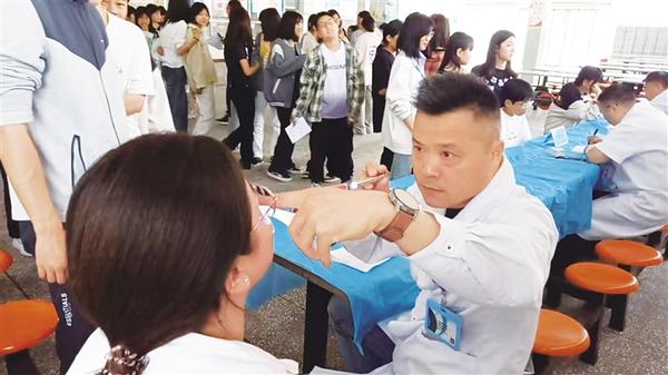 5月6日,商水县委统战部、县新联会、县知联会携手豫东平民医院到大武乡第二初级中学开展爱心义诊活动,为青少年健康成长保驾护航。图为义诊现场。 记者 马治卫 通讯员 沈晓虹 摄