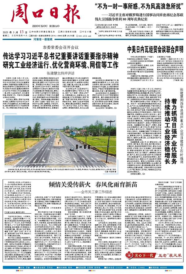 本报讯 (记者 王艳) 5月12日,市委常委会召开会议,传达学习习近平总书记对双拥工作作出的重要指示精神、对俄罗斯进行国事访问并出席纪念苏联伟大卫国战争胜利80周年庆典系列活动的重要讲话精神和《习近平关于河南工作论述摘编》第一章,研究工业经济运行、优化营商环境、网信等工作。市委书记张建慧主持会议并讲话。