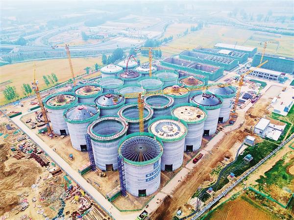 5月15日上午,中央储备粮周口直属库仓储项目施工现场一片繁忙景象。