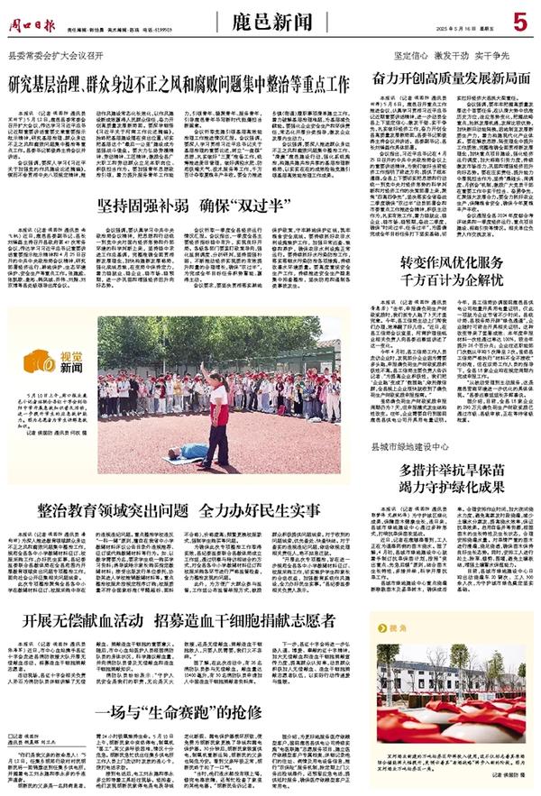 本报讯 (记者 侯国防 通讯员 宋田宁) 5月12日,鹿邑县委常委会召开扩大会议,传达学习习近平总书记近期重要讲话重要文章重要指示批示精神,研究基层治理、群众身边不正之风和腐败问题集中整治等重点工作。县委书记郭俊涛主持会议并讲话。