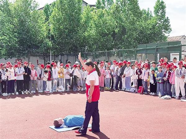 5月10日上午,周口报业鹿邑小记者站联合县红十字会到伯阳中学开展急救知识普及活动,进一步提升学生的应急救护能力。图为志愿者为学生讲解急救知识。