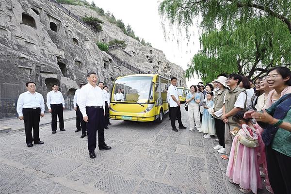 已有1500多年历史的龙门石窟,是重要的世界文化遗产。习近平来到这里,察看石窟整体布局风貌和代表性窟龛、造像,同现场的文物保护工作者亲切交流。他强调,要把这些中华文化瑰宝保护好、传承好、传播好。游客们见到总书记,都十分欣喜,纷纷向总书记问好。习近平不时同大家交流,特别鼓励小朋友们多到实地寻溯中华文化,从小树立文化自信。他指出,文旅融合前景广阔,要推动文旅产业高质量发展,真正打造成为支柱产业、民生产业、幸福产业。