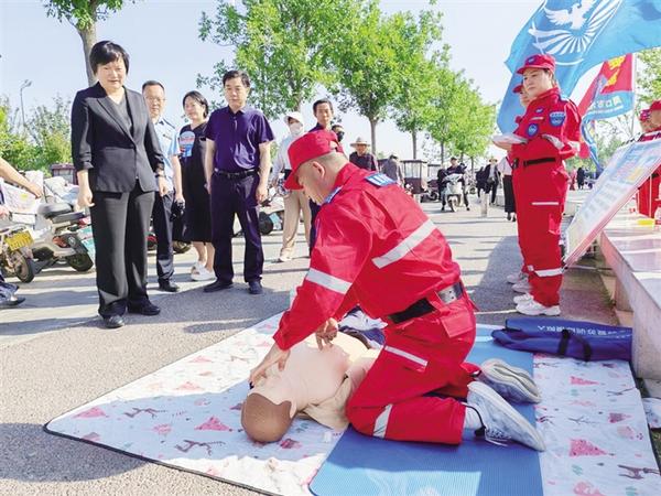 淮阳区组织专业救援人员采用“讲解+演示”的方式,向群众传授心肺复苏等急救技能和健康管理知识。