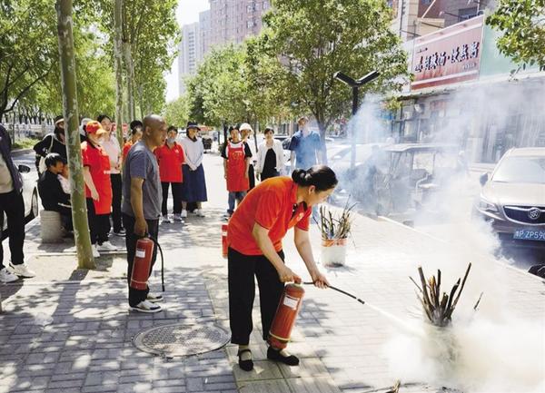 川汇区组织工作人员开展防灾减灾集中宣传活动,向居民讲解火灾预防知识,演示消防器材的使用方法。