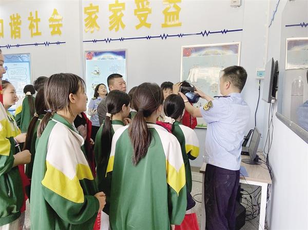 在沈丘县防震减灾科普教育基地,学生们借助VR体验仪,身临其境地体验地震场景。