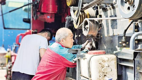 5月20日,在项城市农机物流产业园,两名技术人员正在对一台小麦联合收割机进行检修。为确保各类农业机械以最佳状态投入“三夏”生产,连日来,项城市积极组织开展农机安全专项检查和保养检修工作,全力备战“三夏”生产,确保夏粮颗粒归仓。 记者 张志新 摄