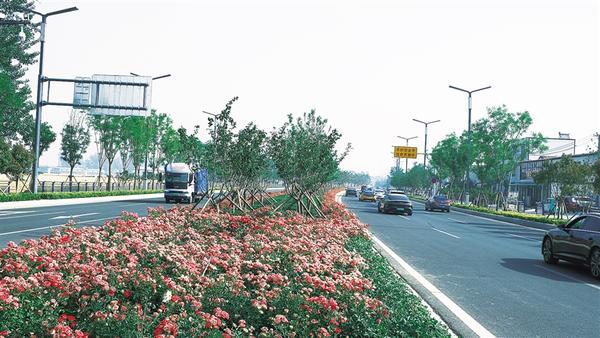道路通,百业兴。中州大道北延工程竣工通车一年来,周口中心城区与西华的交流合作日益密切。图为中州大道西华段隔离带内鲜花怒放,呈现出生机盎然的景象。记者 张猛 孙靖 摄
