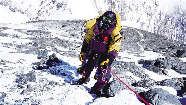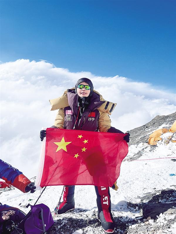 5月24日9时29分,珠穆朗玛峰北坡再传捷报——中国登山家、当代艺术家、鹿邑女青年孙宁以无畏之姿挑战“世界之巅”,成功完成第三次登顶。图一为孙宁奋力攀登。图二为孙宁登顶珠峰后留影。马丁格桑 摄